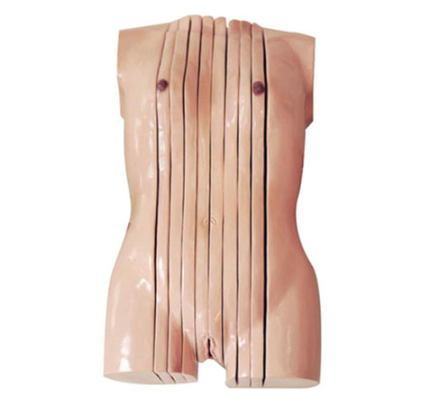 該款男性軀干矢狀斷層解剖模型整體尺寸為42x20x84.5CM,一套共有10片,為方便使用者學習使用,每片可以單獨取下,并設置有數字編號標識每片的前后次序。